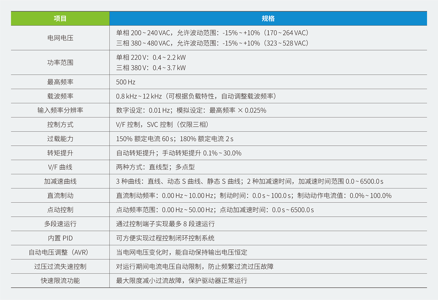 6、更大的額定電流設(shè)計(jì),過載電流更大,加速時間更短