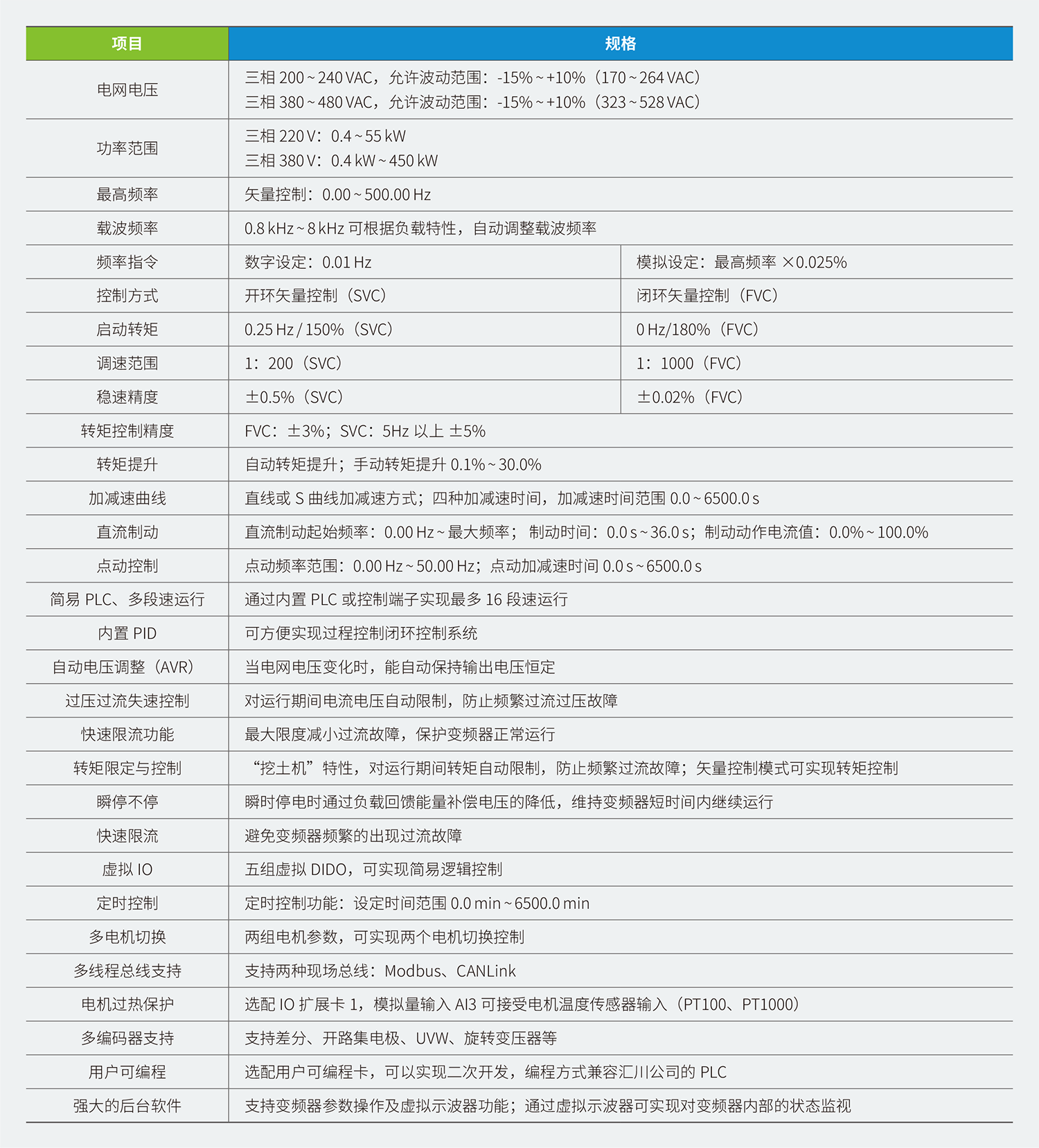 MD500E 系列變頻器是一款通用高性能電流矢量變頻器,主要用于控制和調(diào)節(jié)三相交流同步電機(jī)的速度和轉(zhuǎn)矩,是MD380E 系列的技術(shù)升級(jí)產(chǎn)品。MD500E 采用高性能的矢量控制技術(shù),低速高轉(zhuǎn)矩輸出,具有良好的動(dòng)態(tài)特性、超強(qiáng)的過載能力、增加了用戶可編程功能及后臺(tái)監(jiān)控軟件,通訊總線功能,支持多種PG 卡等,組合功能豐富強(qiáng)大,性能穩(wěn)定。
